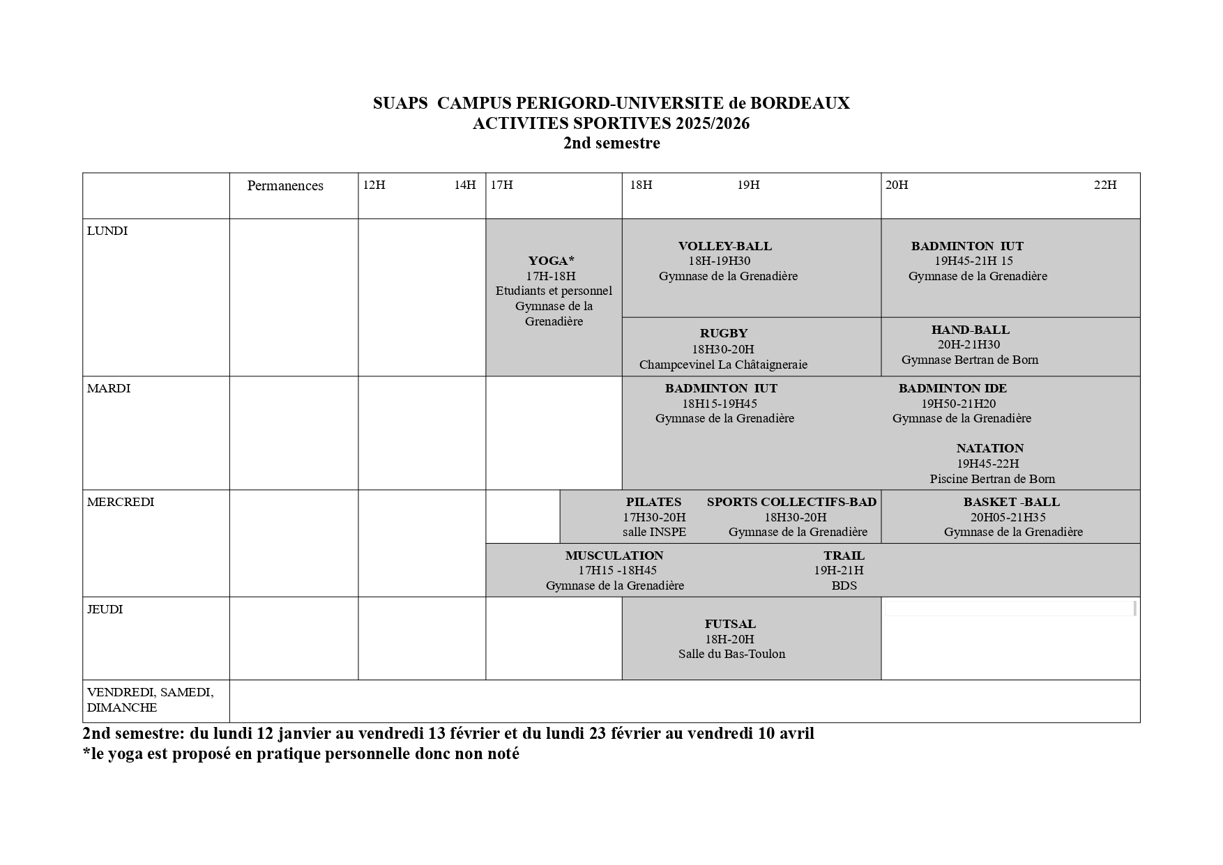 > Contact Marc Gabaud Professeur EPS Université de Bordeaux Responsable - coordonnateur du Sport Universitaire du site de Périgueux Bureau des Sports Tél. : 05 53 02 58 52 Mail : marc.gabaud@u-bordeaux.fr Page Facebook |