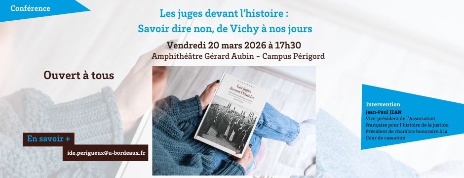 Nous aurons le plaisir d’accueillir Jean-Paul JEAN pour cette intervention consacrée au rôle du juge face aux enjeux historiques et aux exigences de conscience.L'INSTITUT DROIT ET ECONOMIE DE PÉRIGUEUX