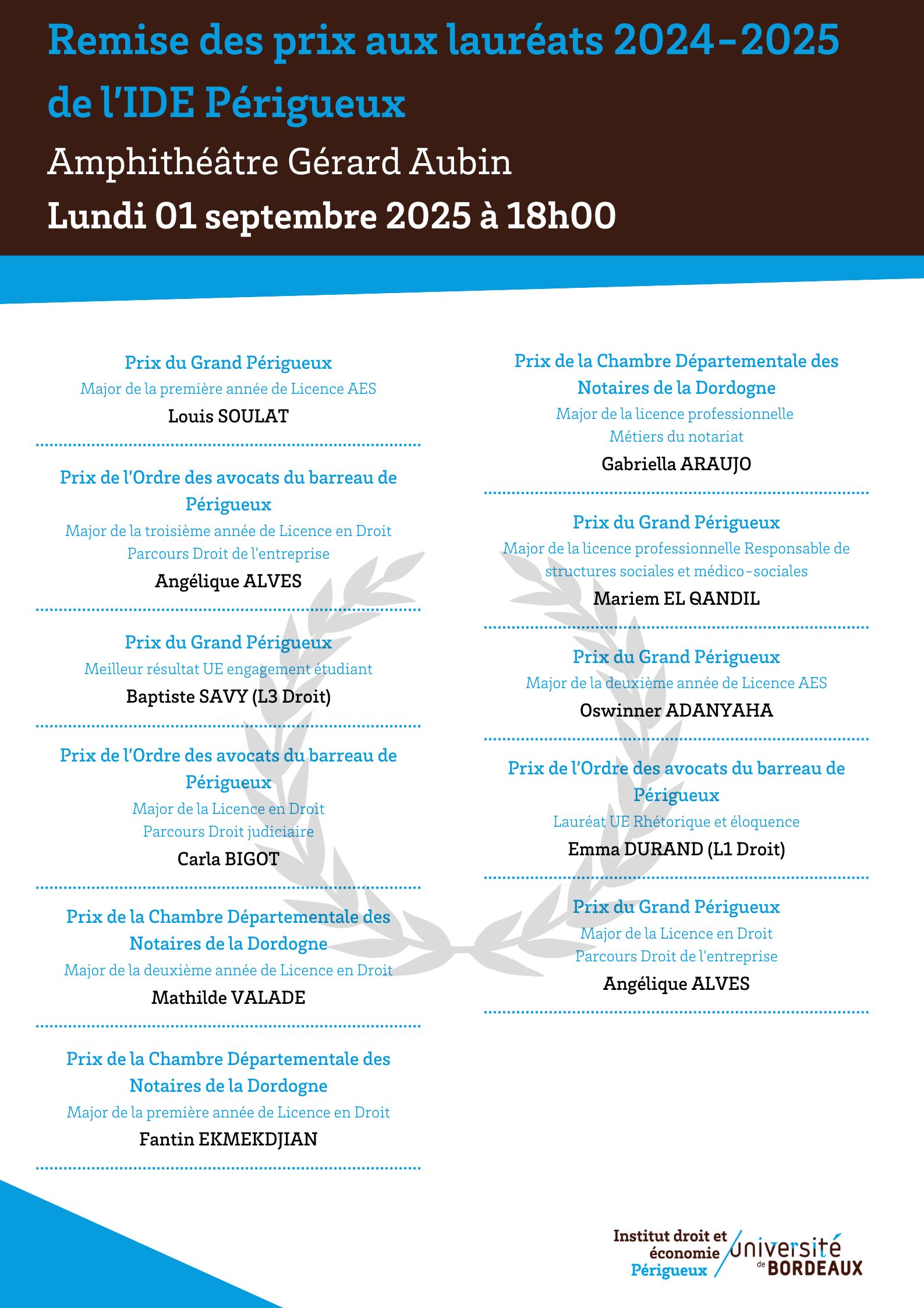Toutes nos félicitations aux lauréats pour leur réussite, et nos vœux de succès pour la suite de leur parcours professionnel et personnel.